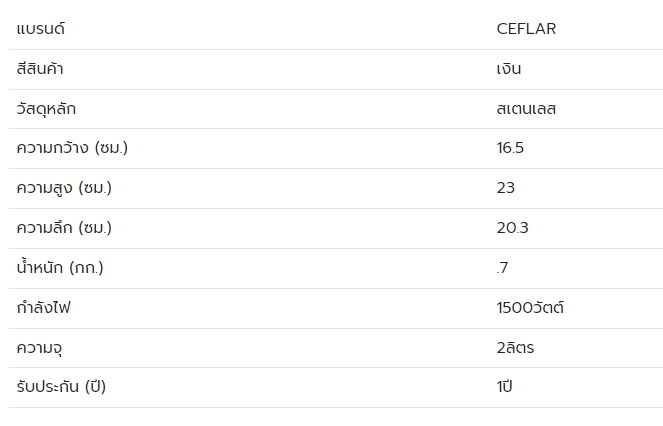 - กำลังไฟ 1500 วัตต์ ทำให้น้ำเดือดได้ภายในระยะเวลาอันรวดเร็ว